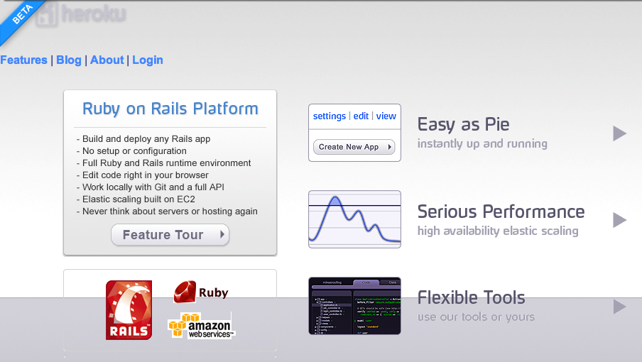 “Add-ons”. Despite throwing away features with their rewrite, an absolute corker of a big new feature appears. It’s how Heroku becomes effectively “an app store for systems administration”. But that’s another story.