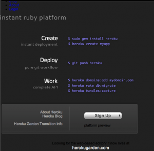 Indeed. No more online code editor. No more sharing. That’s all hived off to herokugarden.com. “Learn Rails, Work from Anywhere, Move to Heroku Later” is the value proposition of that new (erm, old) app nursery.